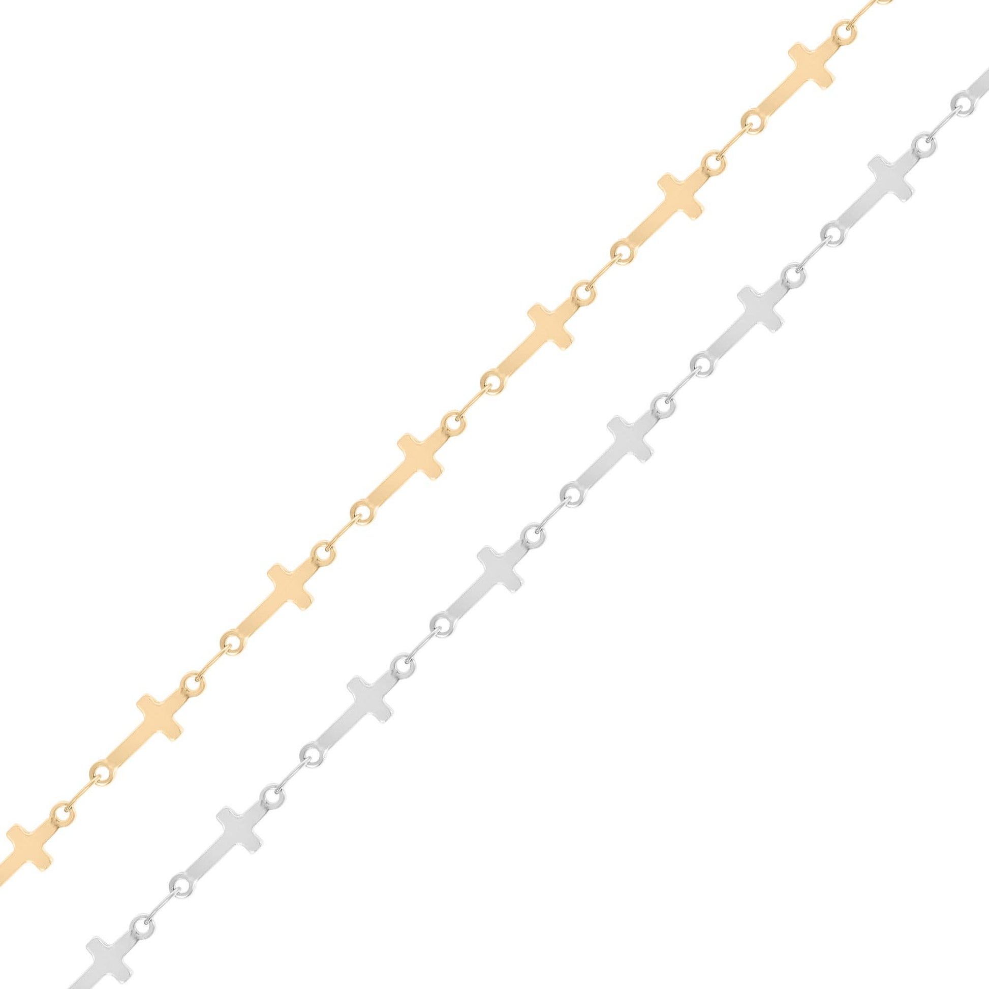 18K Gold PVD Stainless Steel Cross Chain - By The Foot