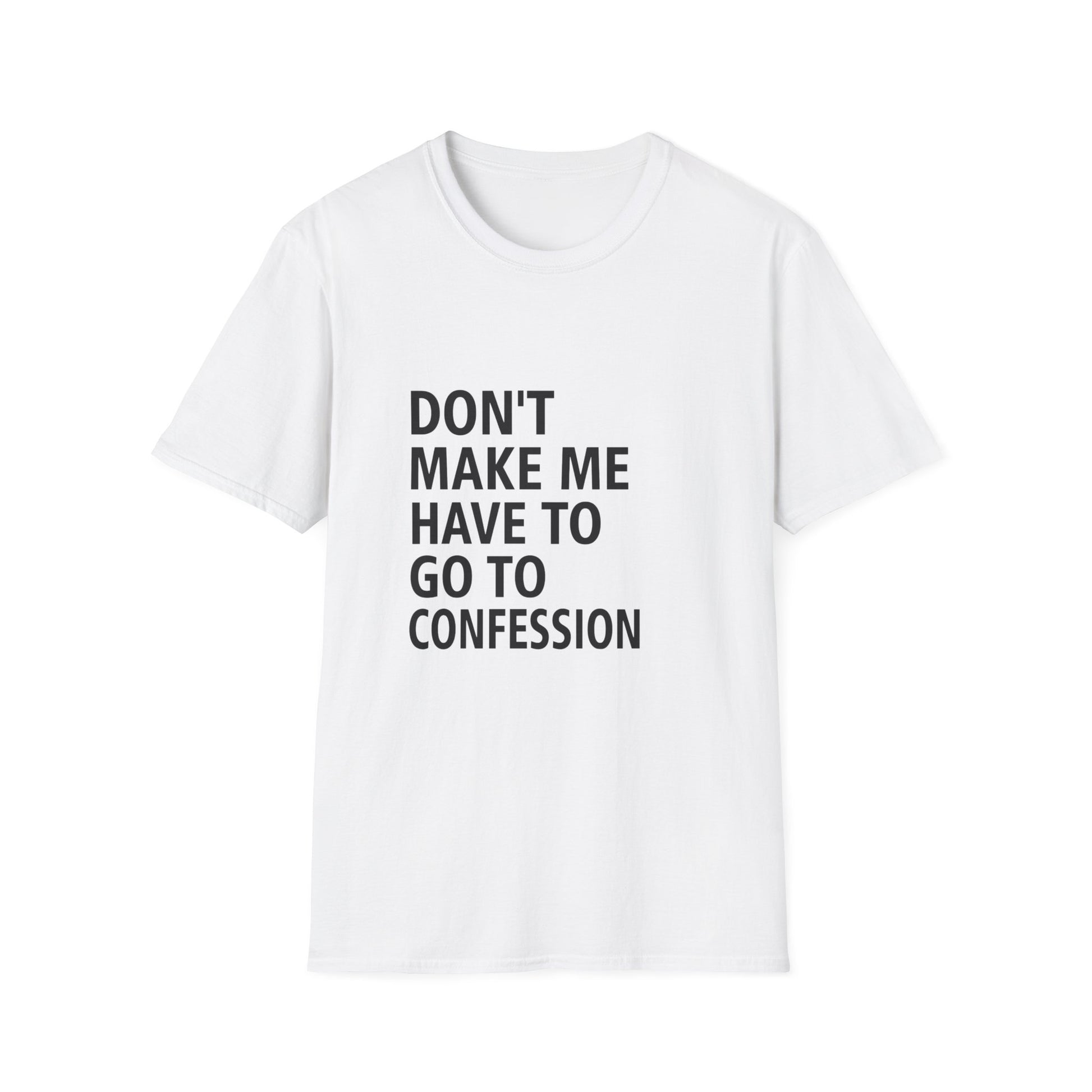 Add some humor to your faith with this playful tee! Featuring the phrase “Don’t Make Me Have to Go to Confession,” it’s perfect for kids, teens, or adults who love lighthearted Catholic humor. Soft, comfortable, and ideal for everyday wear, church events, or casual outings.