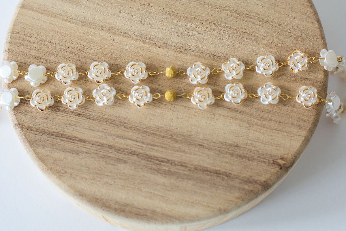 Each bead is a prayer in itself — a bloom offered to the Blessed Mother in gratitude and devotion.