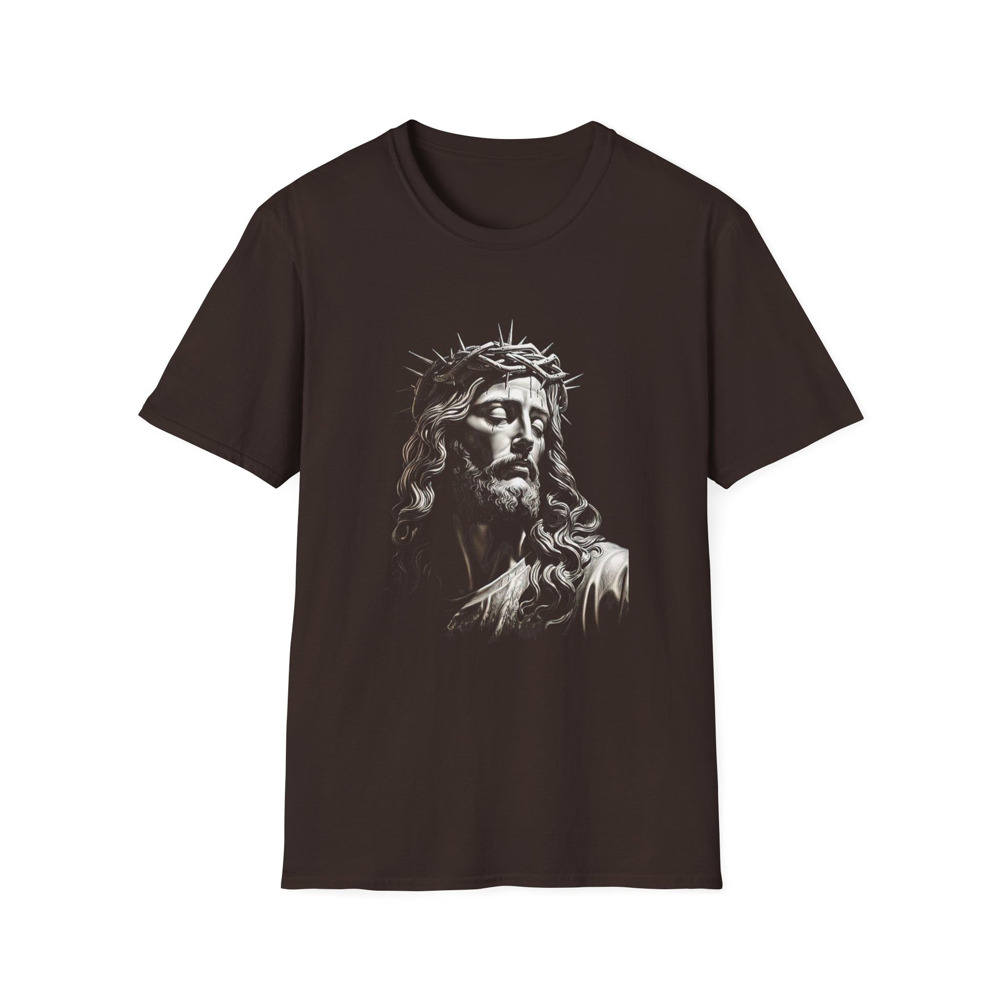Wear your faith with this exclusive t-shirt featuring the image of Jesus Christ crowned with thorns. A piece that blends devotion and style, perfect for those who want to express their spirituality in an elegant and striking way. Made from high-quality, comfortable, and durable fabric, ideal for moments of reflection, faith celebrations, or everyday wear. A meaningful gift for devotees and lovers of sacred art.